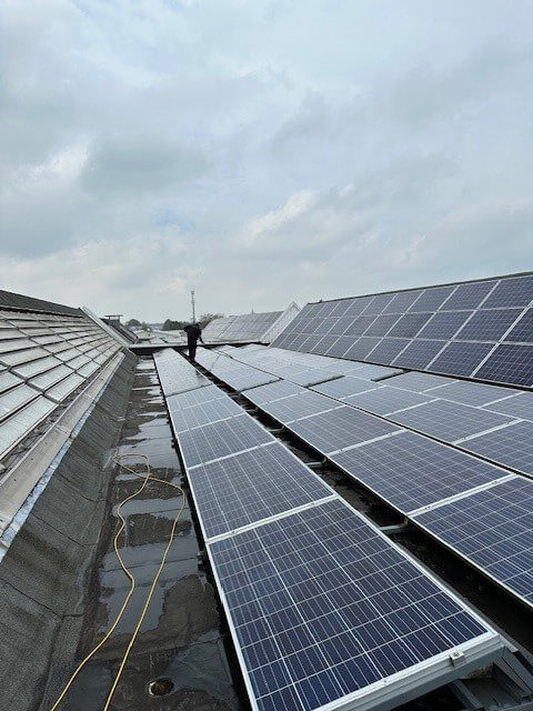 Schoonmaak van 874 zonnepanelen in Utrecht.